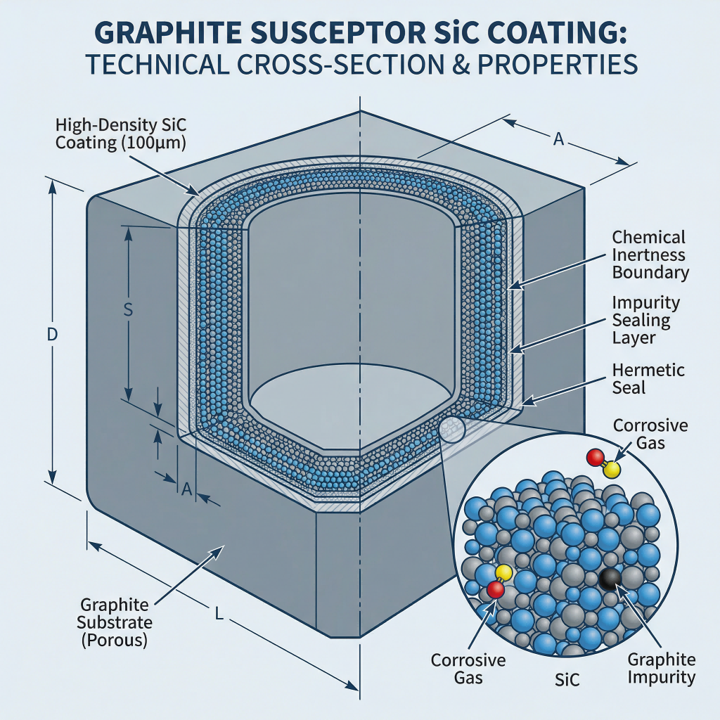 Trong quy trình MOCVD hoặc epiticular, chất nhạy cảm với than chì thường yêu cầu lớp phủ hiệu suất cao. Ví dụ, mật độ của lớp phủ Silicon Carbide (SiC) quyết định trực tiếp khả năng bịt kín các tạp chất bên trong chất nền.