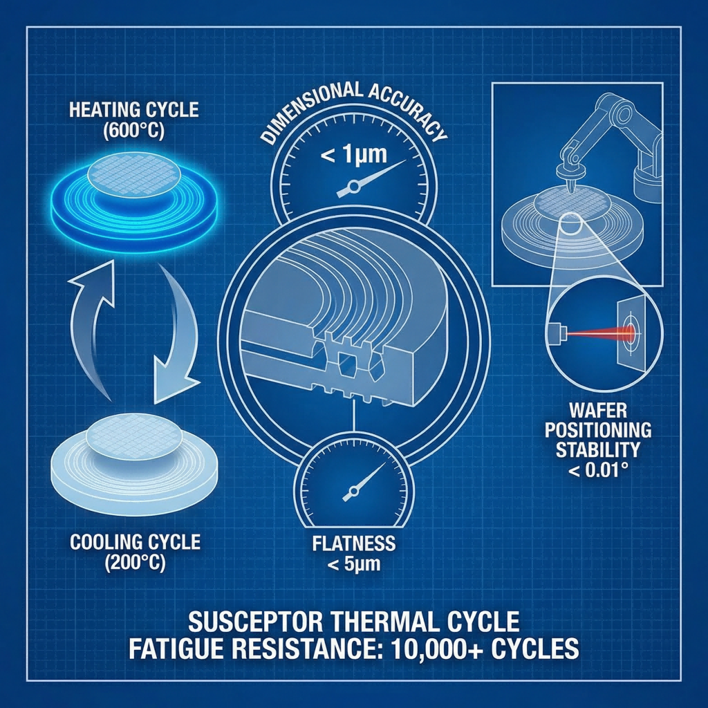 Các chất nhạy cảm cao cấp phải có khả năng chống chịu mỏi chu kỳ nhiệt tuyệt vời. Trong các chu kỳ gia nhiệt và làm mát kéo dài, bộ phận cảm ứng phải duy trì độ chính xác về kích thước và độ phẳng để ngăn ngừa sai lệch định vị tấm bán dẫn do biến dạng cơ học gây ra, nhờ đó đảm bảo rằng năng suất của mỗi mẻ vẫn ở mức cơ bản dự kiến. Bộ cảm ứng cao cấp phải có khả năng chống mỏi chu kỳ nhiệt tuyệt vời. Trong các chu kỳ gia nhiệt và làm mát kéo dài, chất nhạy cảm phải duy trì độ chính xác về kích thước và độ phẳng để ngăn ngừa sai lệch định vị tấm bán dẫn do biến dạng cơ học gây ra, từ đó đảm bảo rằng năng suất của mỗi lô vẫn ở mức cơ bản dự kiến.